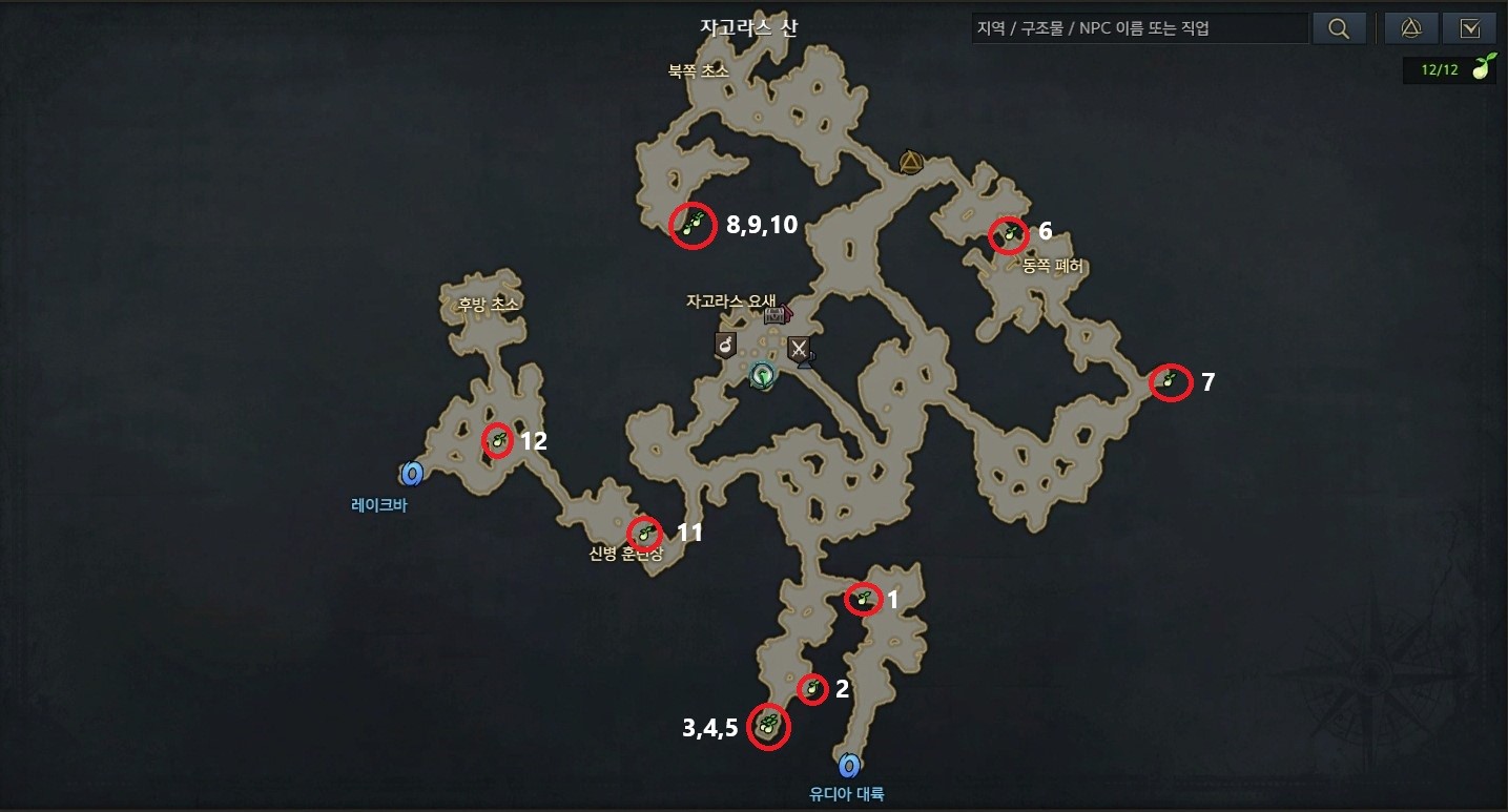 이번에는 자고라스 산 모코코 씨앗 위치를 알아보겠습니다.
