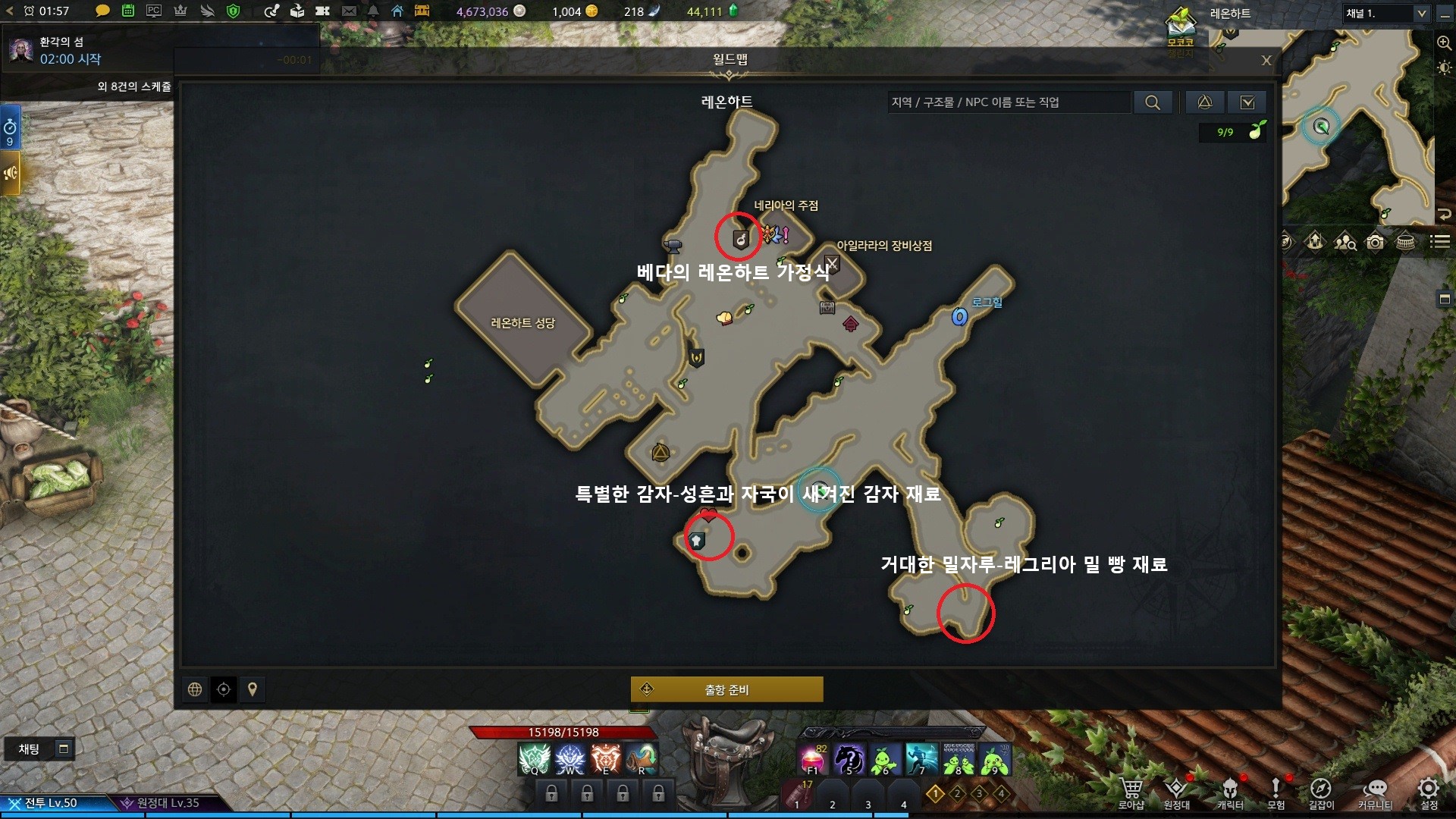 레온하트에서 총3개의 요리,재료를 구할수있습니다.