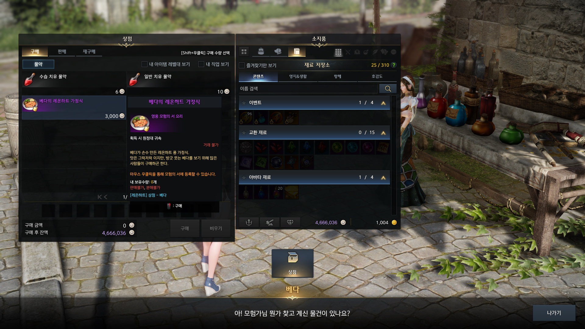 NPC베다에게서 베다의 레온하트 가정식을 구매하실수있습니다.
