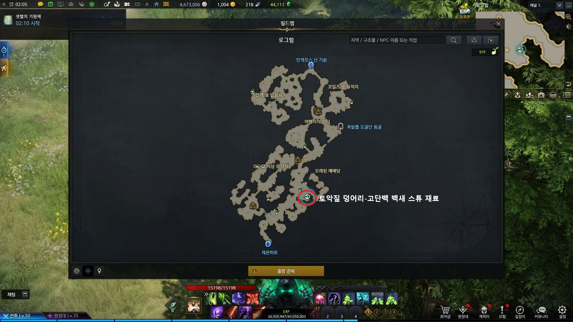 로그힐에서는 1가지의 요리재료를 얻을수있습니다.