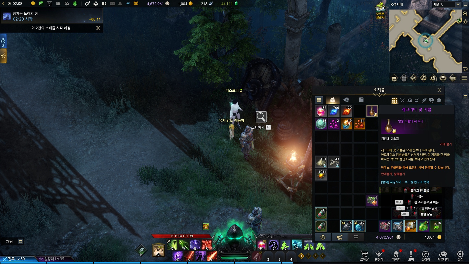 레그리아 꽃기름은 바로 사용해서 모험의서에 등록할수있습니다.