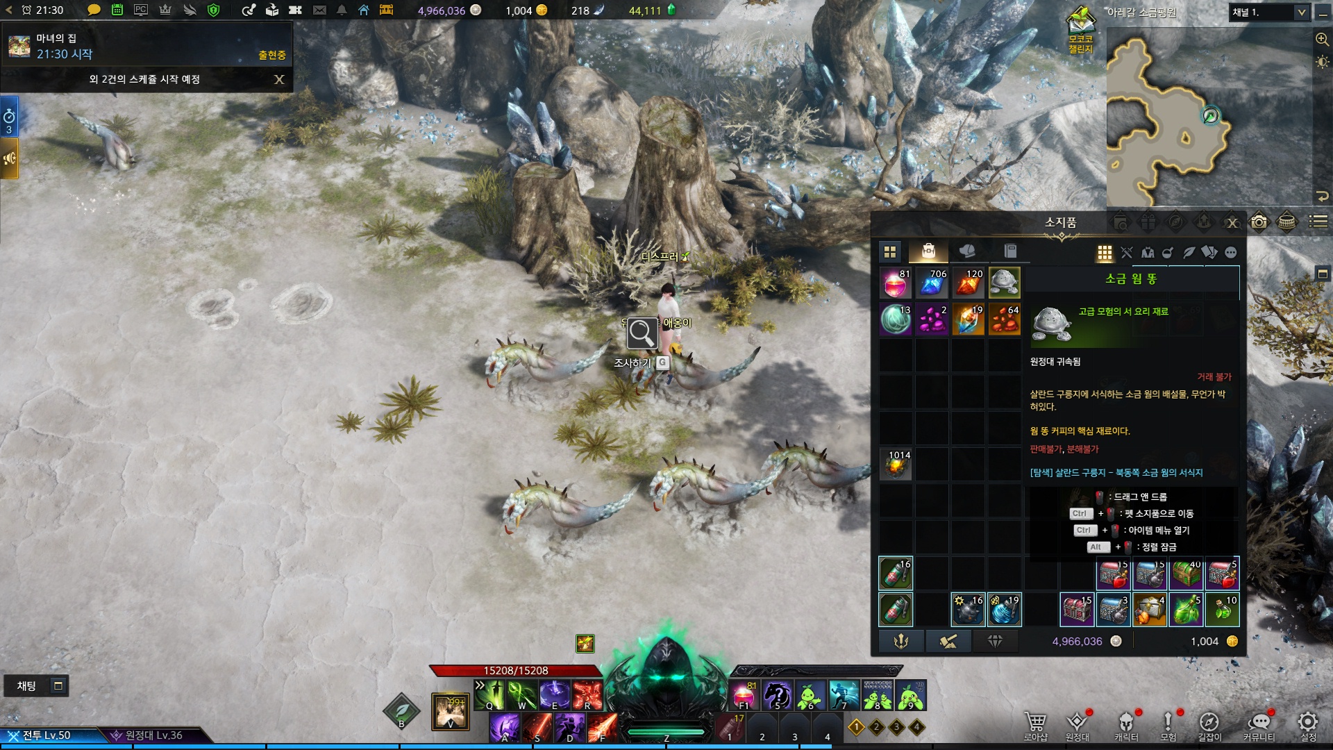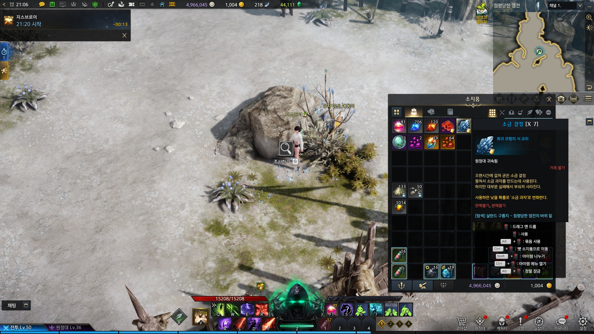 소금 결정을 게속 채집하시다보면 채집이 안될때가 있는데 잠시 기다려주시면 다시 상호작용이 발생합니다.