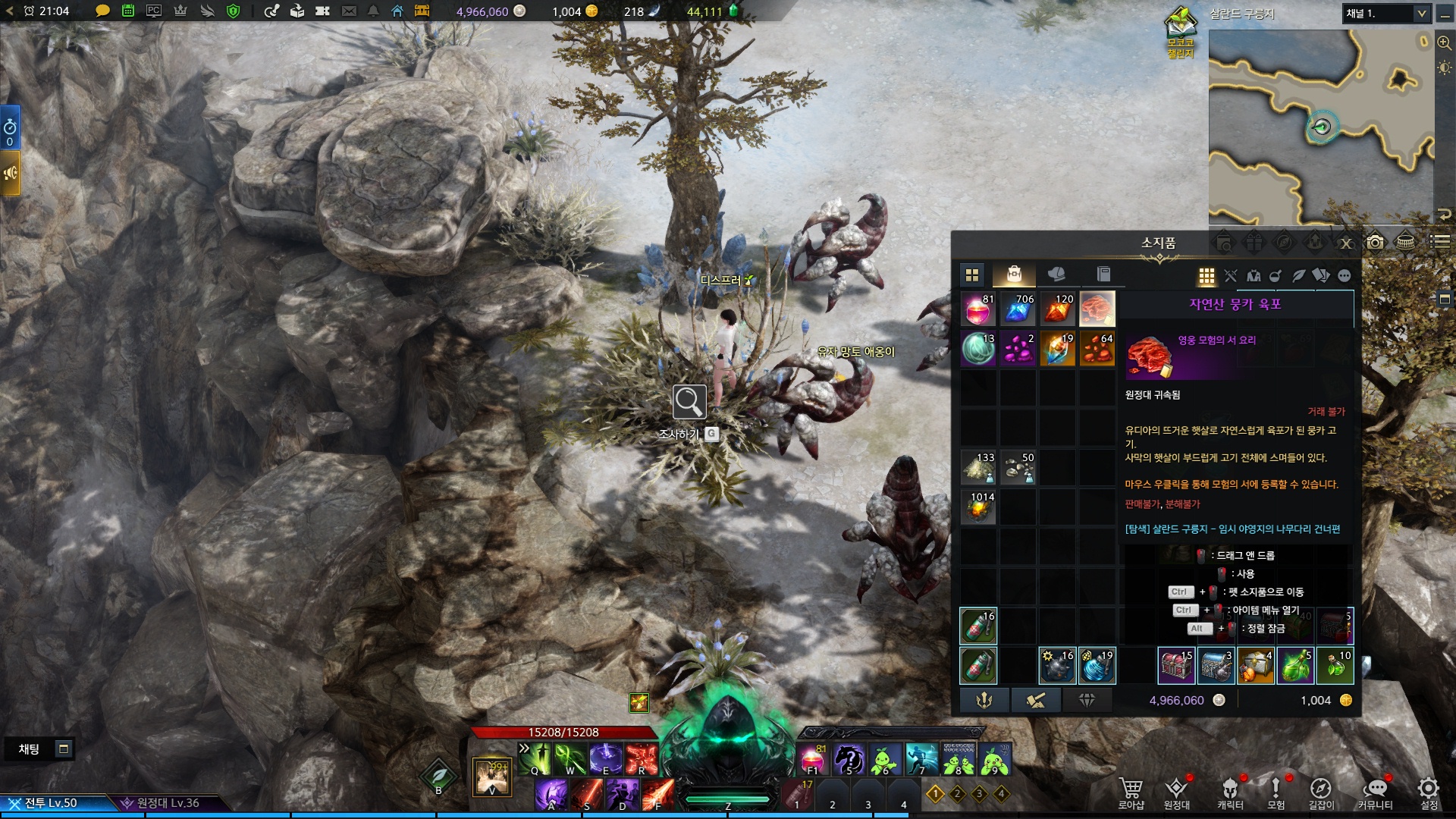 스크린샷의 위치를 확인하시고 가시면 풀숲에서 자연산 뭉카 육포를 얻으실수있습니다.