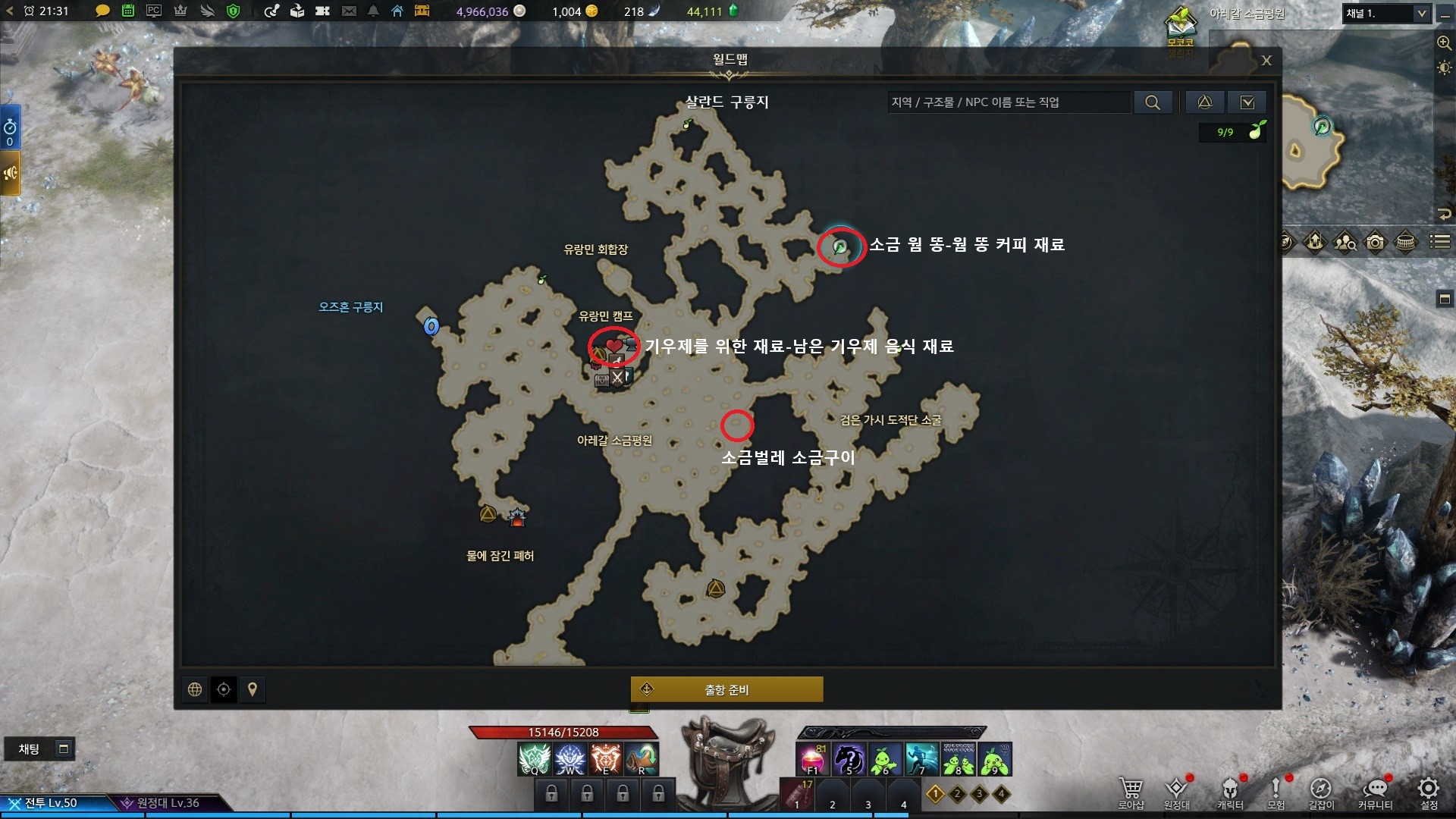 살란드 구릉지 위쪽에는 소금벌레 소금구이,웜 똥 커피의 재료 소금 웜 똥,남은 기우제 음식의 재료 기우제를 위한 재료가 있습니다.