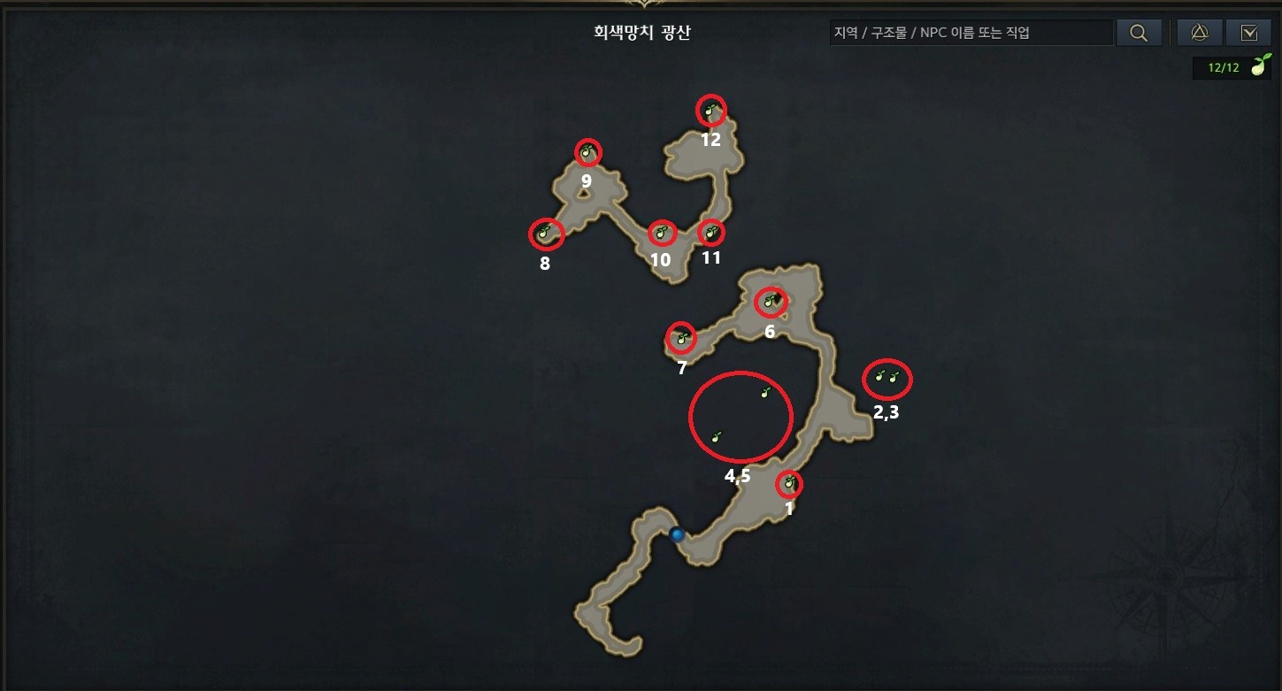 회색 망치 광산에는 총 12개의 모코코 씨앗이 있습니다.